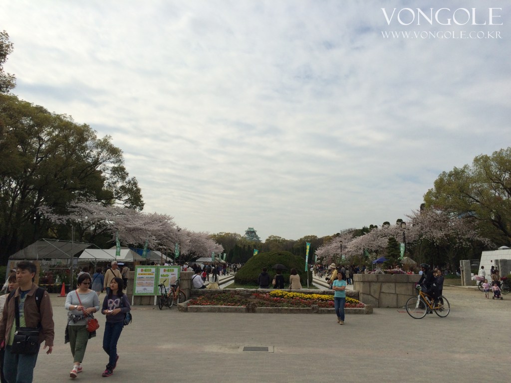 바쁘게 준비해서 향한 곳을 바로 오사카성이었다. 오사카는 물론 일본을 대표하는 랜드마크 중에 랜드마크였기에 정말 가보고 싶었다. 지하철역에서 내리자마자 친절하게 써놓은 안내판을 따라 올라오니 광활하게 펼쳐진 공원의 규모에 감탄이 절로 나왔다. 게다가 아름다운 벚꽃까지 만개하였으니 들뜨는 마음을 도저히 진정시킬 수 없었다.