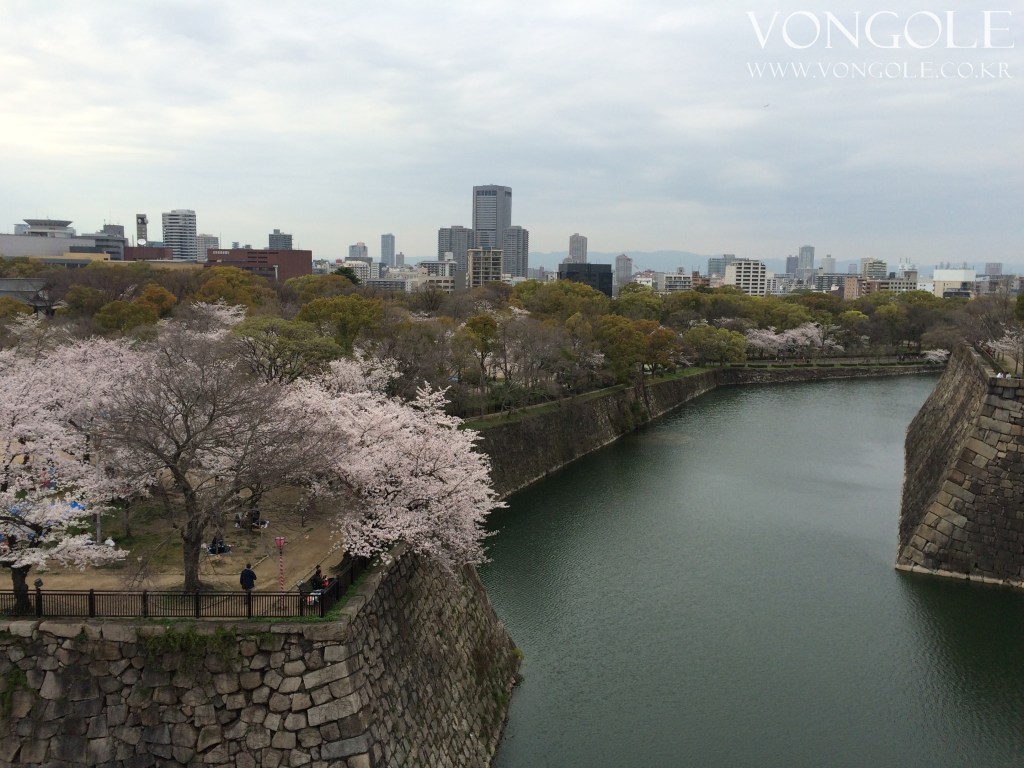 슬슬 해자垓字가 나오기 시작한다. 앞에서도 언급하였지만 오사카성 공원의 광활함에 이 또한 한 몫을 하고 있다. 성을 둘러싼 거대한 인공 구조물은 사람이 오사카성까지 쉽게 당도하지 못하게 하기 때문이다. 필자가 오사카성에서 몇 시간동안 걷고나서 뻗었던 경험은 훗날 쉐어하우스 매니져를 하면서 만난 수많은 여행객들에게 있어 유용했던 Tip(여행일정에 있어 체력안배…) 중 하나가 되었다.