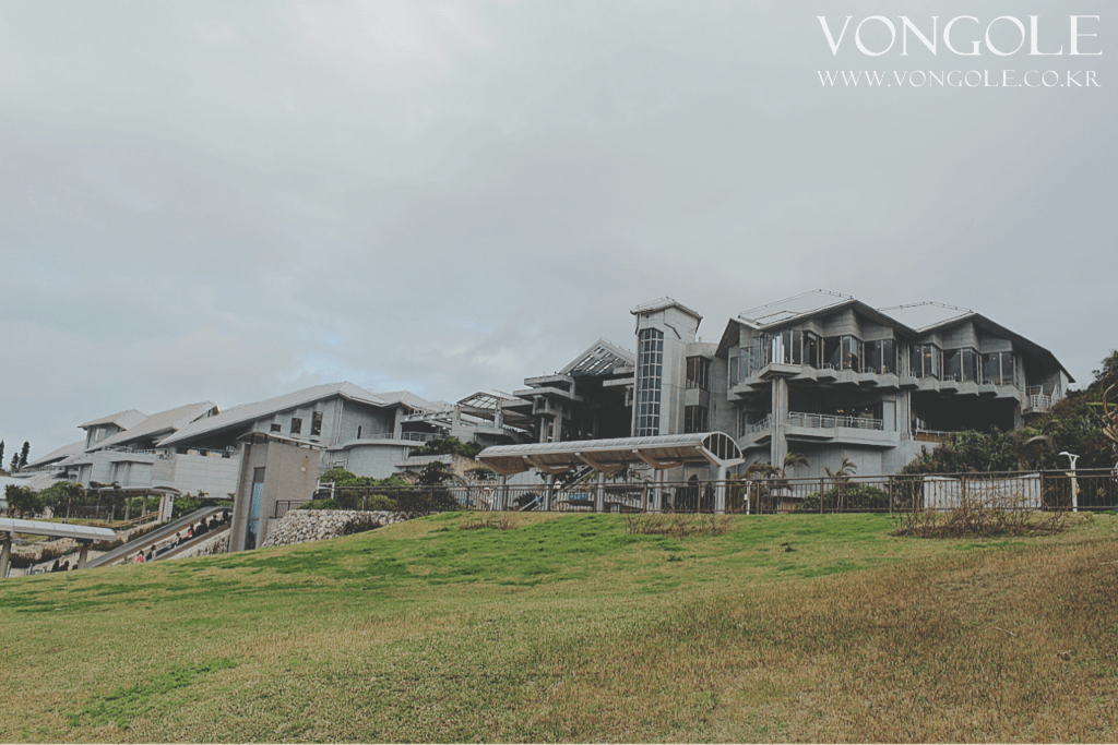 그래서인지 오키나와 여행에서 가장 안전하고(?) 편안하게 돌아다녔던 곳이 바로 츄라우미 수족관이었다. 아니나다를까 입구에서부터 일본 각지에서 온 단체관광객으로 꽉꽉 들어차 있었다. 하지만 이전에 방문했던 오사카 카이유칸과 시모노세키 카이쿄칸과는 다르게 수족관 주변의 풍경부터가 실로 독보적이었다. 남국의 섬이라는 지리적 환경 때문인지 에메랄드 빛 바다를 잠깐동안 둘러보는 데에도 감탄이 절로 나올 정도였다. 물론 강풍으로 인해 장시간 서있기는 힘들었지만, 그 아름다운 바다는 오키나와 여행에서 가장 기억에 남는 장소가 되었다.
